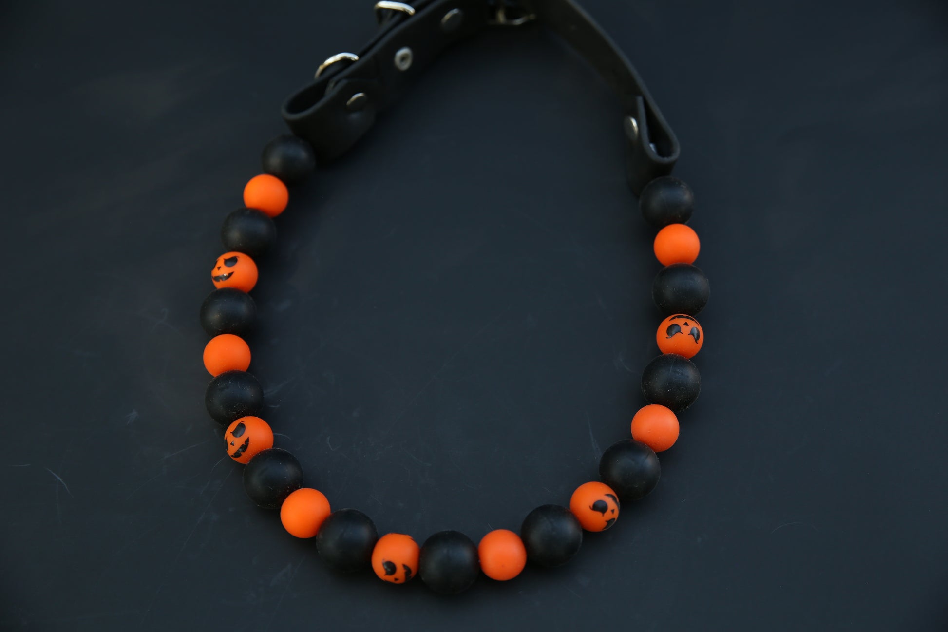 This Specific design is offered in 1 inch or 1/2inch biothane straps + silicone beads, O-Ring or Martingale Designs. O-Ring and Martingale Designs are custom to your pets neck. Bead sizes will vary based on sizing and design.