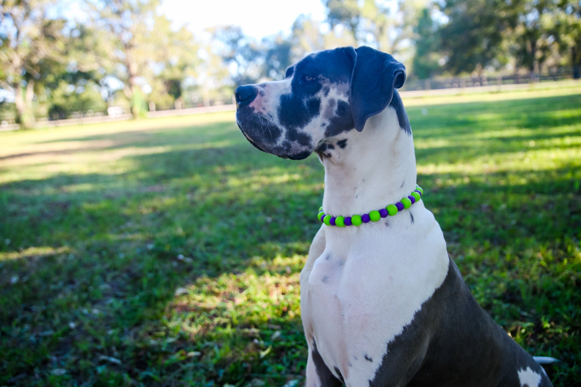 This Specific design is offered in 1 inch or 1/2inch biothane straps + silicone beads, O-Ring or Martingale Designs. O-Ring and Martingale Designs are custom to your pets neck. Bead sizes will vary based on sizing and design.